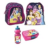 - " disney Princess " 4 teiliges Set bestehend aus Rucksack + Turnbeutel + Brotdose + Trinkflasche RUCKSACK / TASCHE / KINDERGARTEN-RUCKSACK MIT VERSTELLBAREN TRAGEGURTEN MIT GROSSEM INNENFACH UND FRONTTASCHE ca. 27 x 21 x 10 cm gross Material: 100% polyester